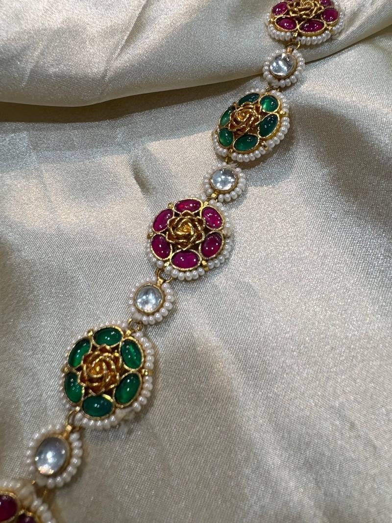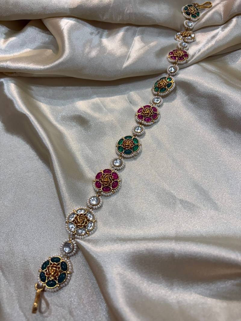 | Product Description | Enhance Your Traditional Look With This Exquisite Kundan Matha Patti. This Stunning Piece Of Forehead Jewelry Features Intricate Pachi Kundan Work, Showcasing A Blend Of Traditional Craftsmanship And Contemporary Design With Floral Motif. Perfect For Weddings, Festive Occasions, Or Any Special Celebration, This Matha Patti Will Add A Touch Of Regal Elegance To Your Ensemble. Base Material: Alloy Includes: One Mathapatti |