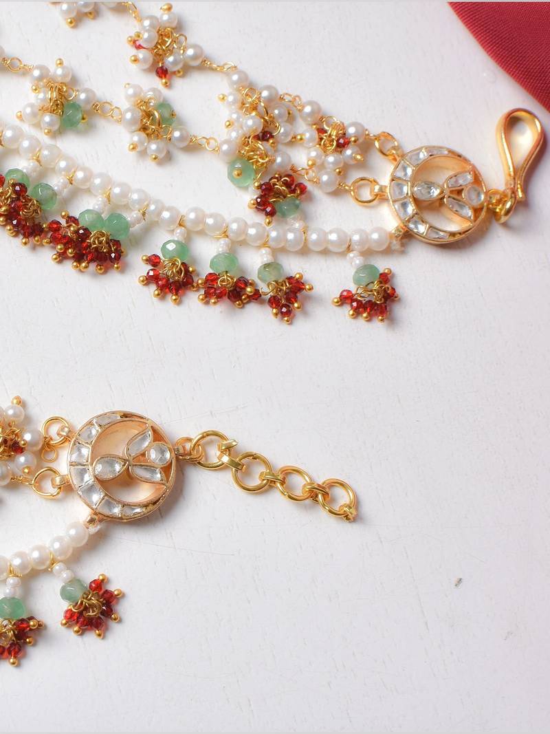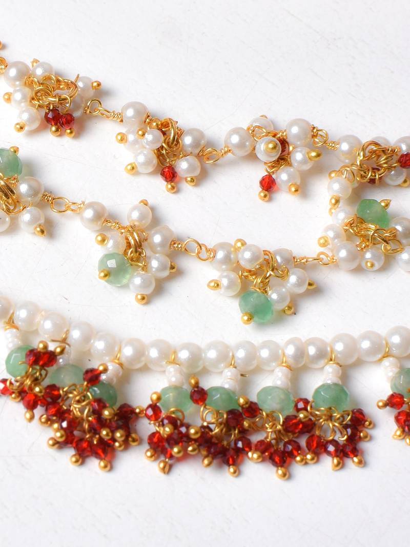 | Product Description | A Beautiful Pair Of Three Layered Hair Chain Strung With Small Kundan And Pearls And Beads. Adorn Them For Your Mehendi Ceremony Or Wear Them For A Traditional Soiree That You Plan On Attending In The Near Future. Base Material: Alloy Includes: Pair Of Hairchain Orders Requiring Any Customization Will Require Additional Time !! This Maangtikka Can Also Be Crafted In 92.5 Sterling Silver Base Material. For Customization, Get In Touch With Us On +917838751954 Or Josyastudio@Gmail.Com. |