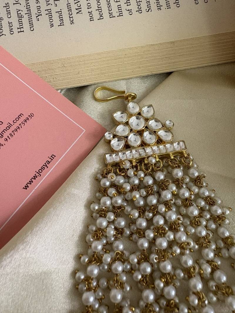 | Product Description | This Exquisite Luxurious Gold Plated Kundan Jadau Passa Is A Stunning Piece Of Jewelry That Enhances Any Outfit. It Showcases A Breathtaking Combination Of Pearl Strings And Pachi Kundan, Along With Delicate Clusters Of White Pearl Drops, Exuding Timeless Elegance. The Intricate Jadau Craftsmanship And Refined Design Make This Passa A True Masterpiece. Perfect For Special Occasions Such As Weddings, Festivals, And Celebrations, It Also Makes A Wonderful Gift For Those Who Appreciate Traditional Indian Jewelry. Base Material: Alloy Includes: One Passa |