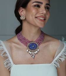 | Product Description | Adorn Yourself With This Majestic Shopjbr Necklace, Showcasing Multiple Strands Of Delicate Lavender Seed Beads. A Bold, Central Lapis Lazuli Hued Stone Is Elegantly Framed With Glittering Stones And Dangling Pearl Drops For A Sophisticated Finish.