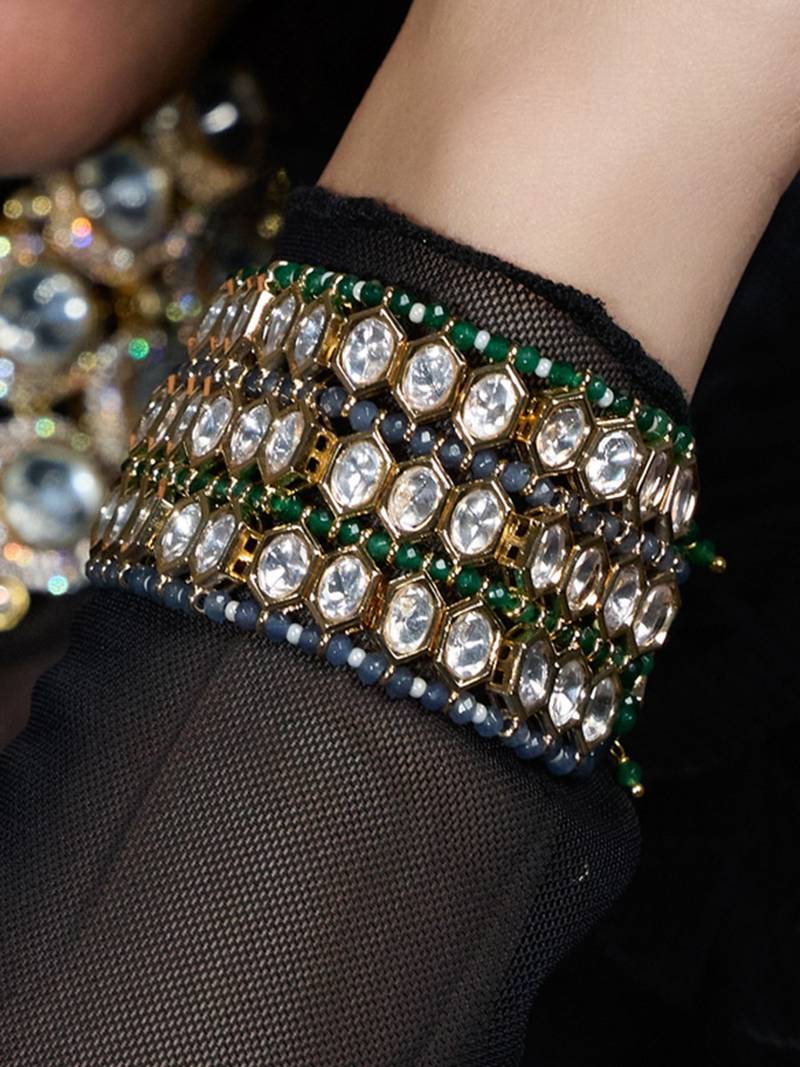 | Product Description | A Stunning Layered Bracelet With Signning Crystal Like Stones, With Deep Green And Navy Beads. This Piece Adds A Bold And Modern Touch; It Goes With Every Outfit For Any Kind Of Festival.