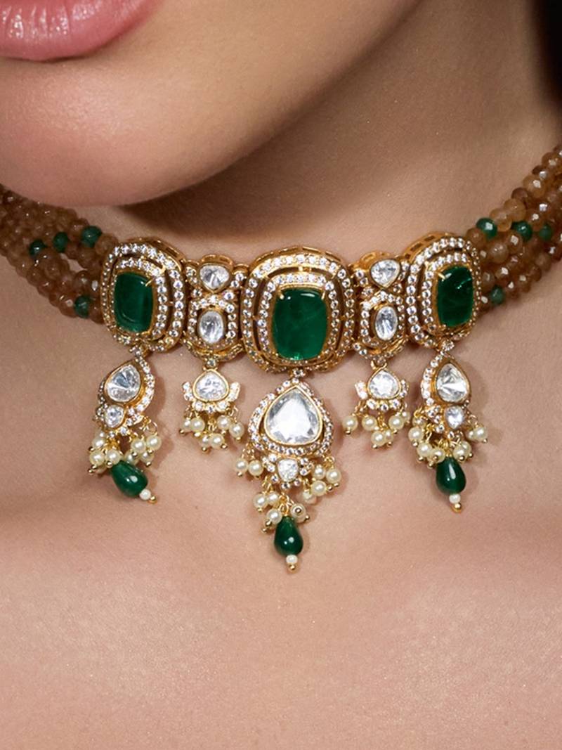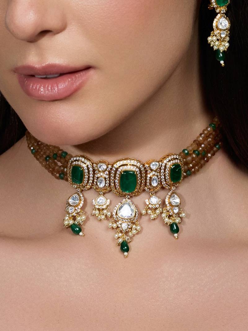 | Product Name | Gold Plated Green Stone Kundan Choker Necklace Set | |