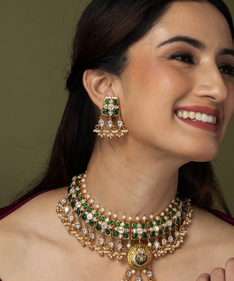 | Product Name | Gold Plated Kundan Green Stones Necklace Set | |