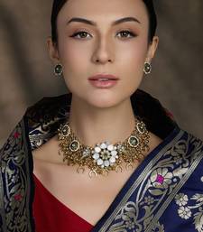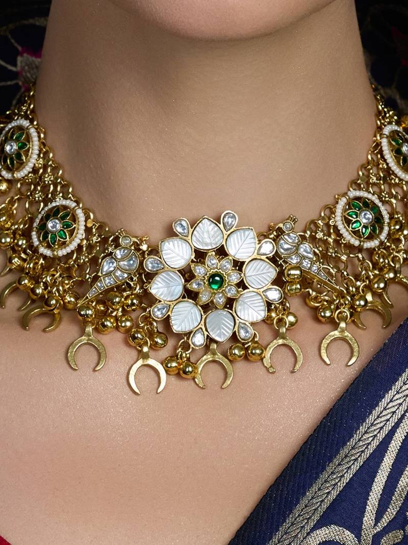 | Product Description | : Exquisite Gold Tone Choker With Intricate Floral Patterns And Embedded Stones. Ideal For Weddings Or Traditional Wear, Adding Timeless Beauty And Royal Elegance To Your Ensemble.