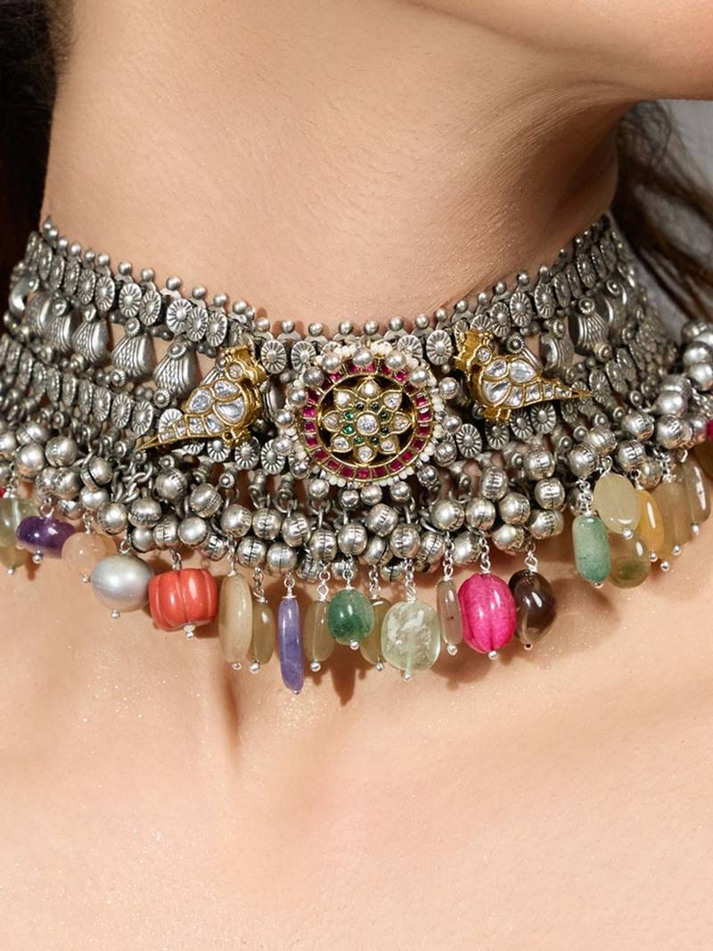 | Product Description | Add A Pop Of Color To Your Look With This Vibrant Boho Choker Necklace. Crafted With Oxidized Silver And Adorned With Multicolored Beads, It's A Perfect Blend Of Tribal Artistry And Playful Charm For Everyday Or Festive Styling.