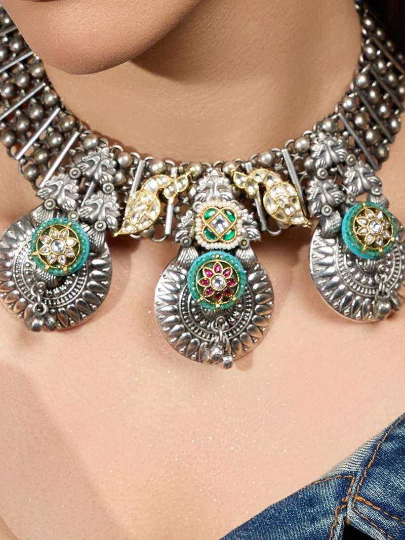 | Product Description | This Antique Coin Necklace Features Oxidized Metalwork, Intricate Detailing, And Hanging Round Motifs With Hints Of Green And Gold. A Perfect Fusion Of Heritage And Artistry, It Enhances Ethnic Wear With Bold Character And Timeless Beauty.