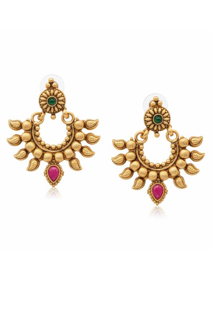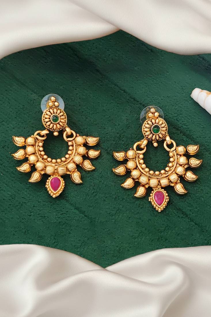 Product Description | 1. High Gold Polish Design – Elegant Earrings With Full Stone Setting And Glossy Finish For A Royal Look.