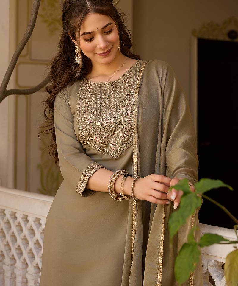 | Product Name | Beige Embroidered Rayon Kurta Set With Dupatta | |