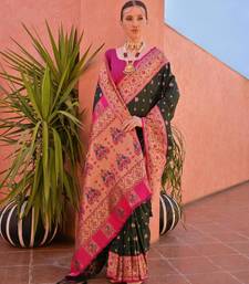 Bottle green paithani silk zari woven saree with blouse