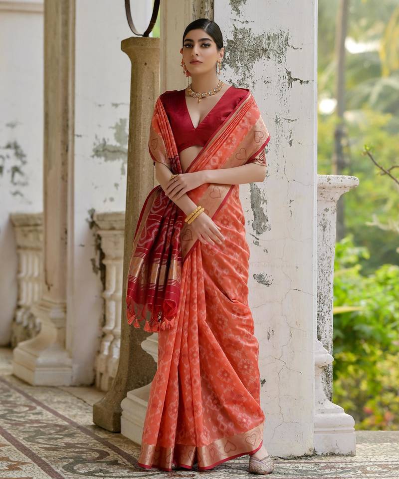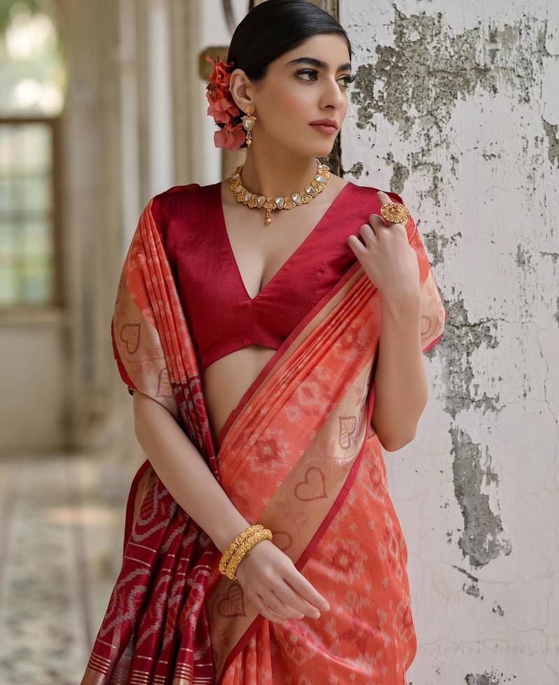 | Product Name | Coral Soft Raw Silk Zari Woven Saree With Blouse | |