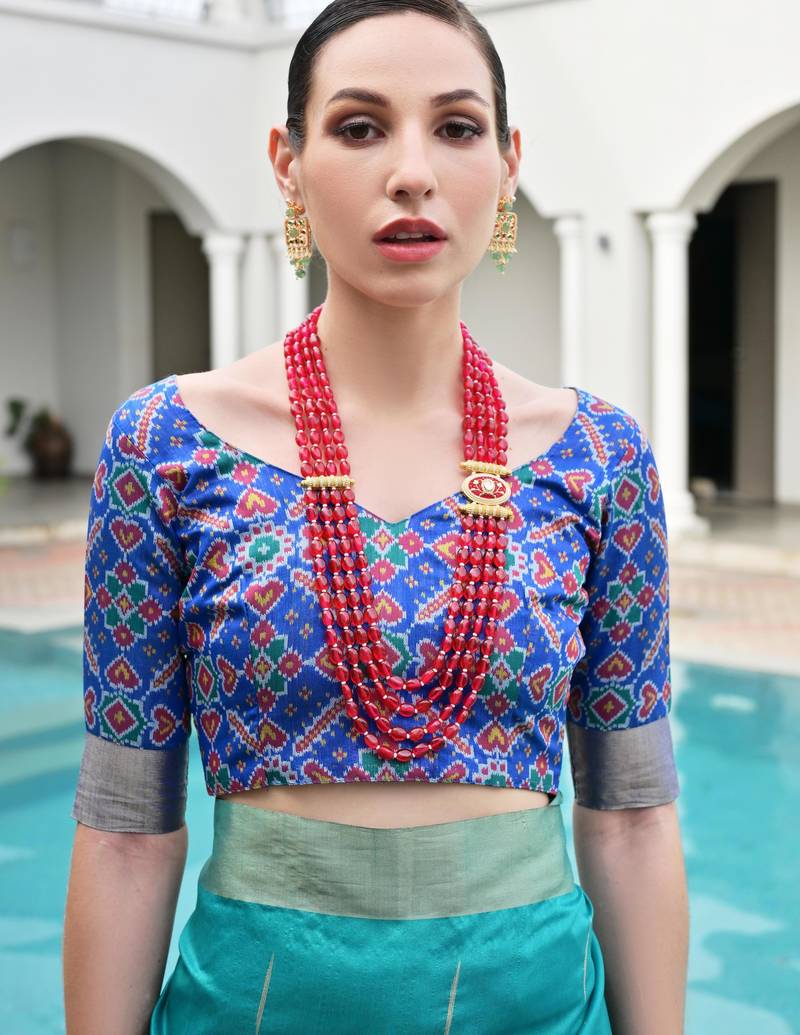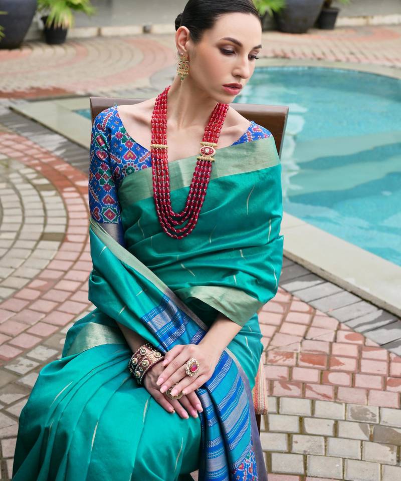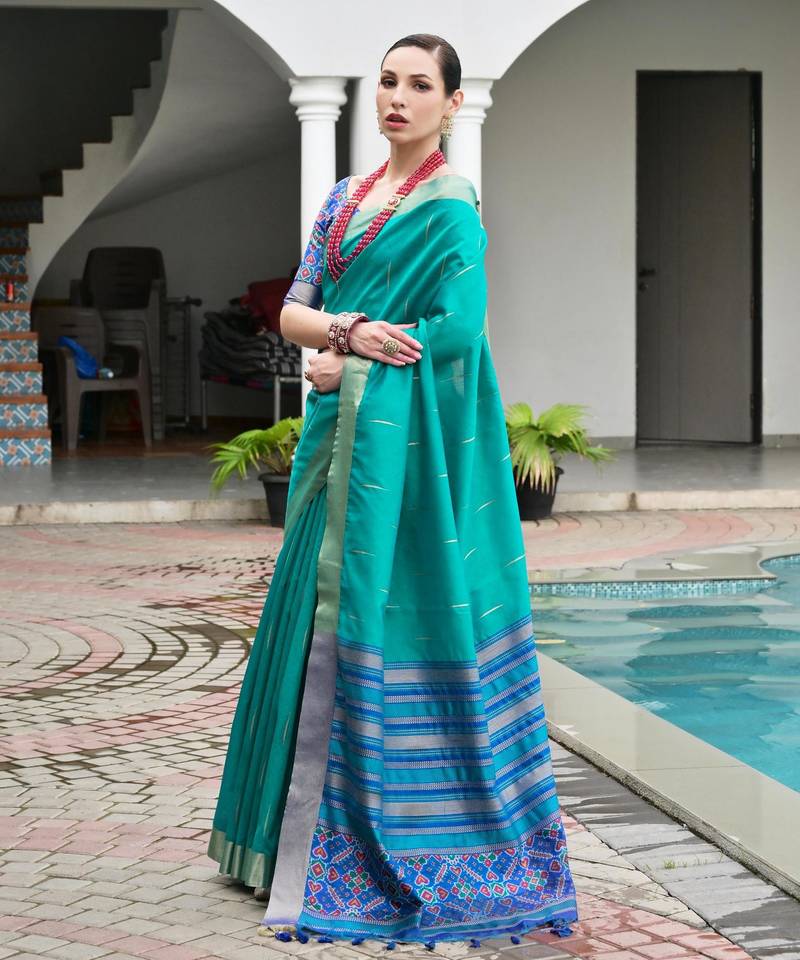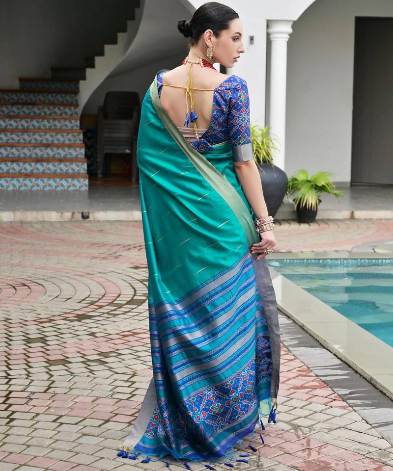 Firozi khadi raw silk meena weaving patola saree with blouse