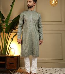 | Product Name | Men's Mehendi Khadi Cotton Mirror Embroidered Kurta With Pajama Set | |