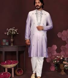 Men's purple cotton silk sequins embroidered kurta with pajama set