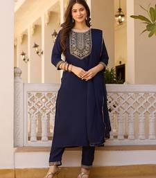 Navy blue embroidered rayon kurta set with dupatta stitched