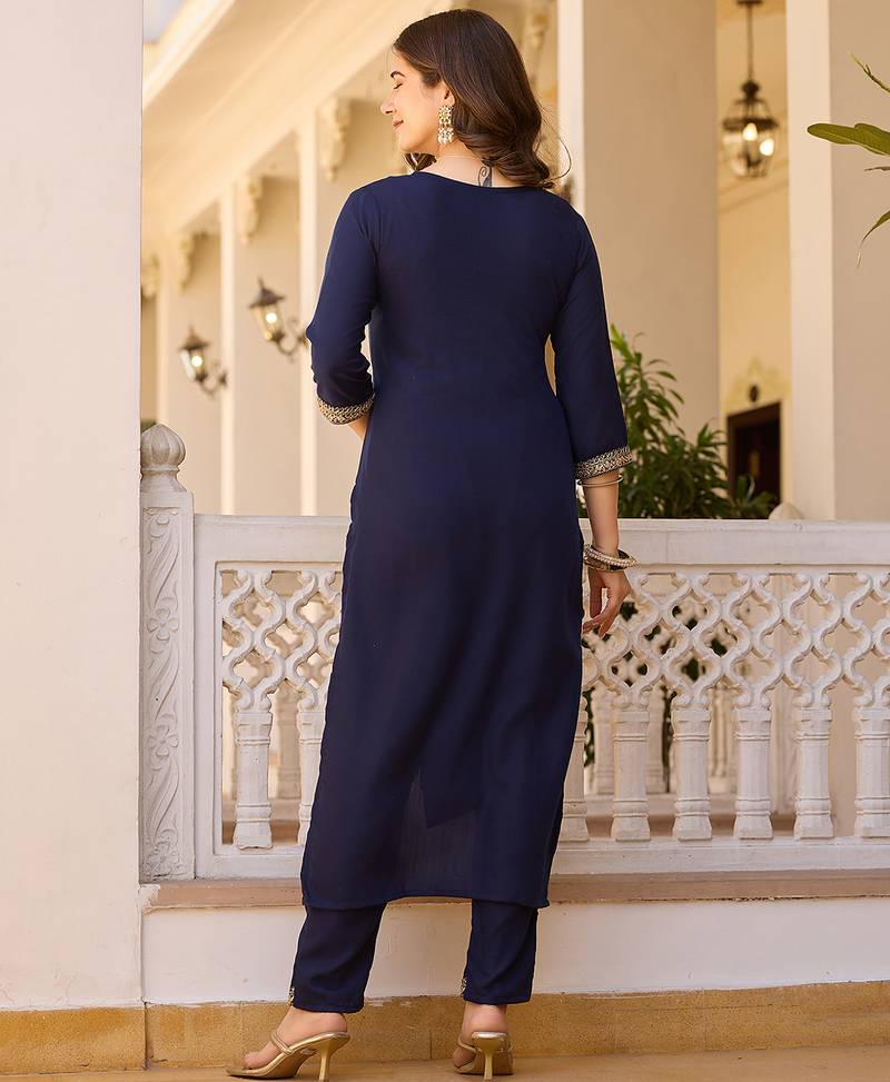 | Product Name | Navy Blue Embroidered Rayon Kurta Set With Dupatta | |