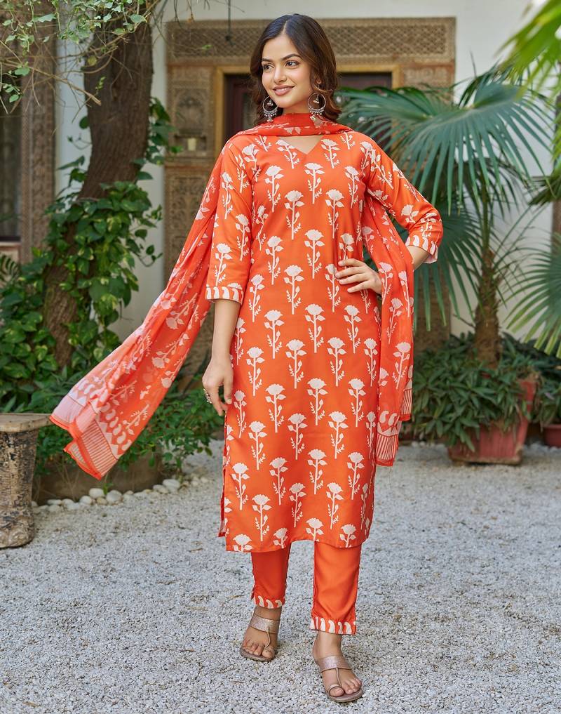 | Product Name | Orange Floral Printed Cotton Blend Kurta Set With Dupatta | |