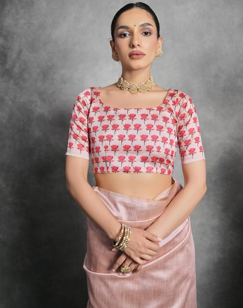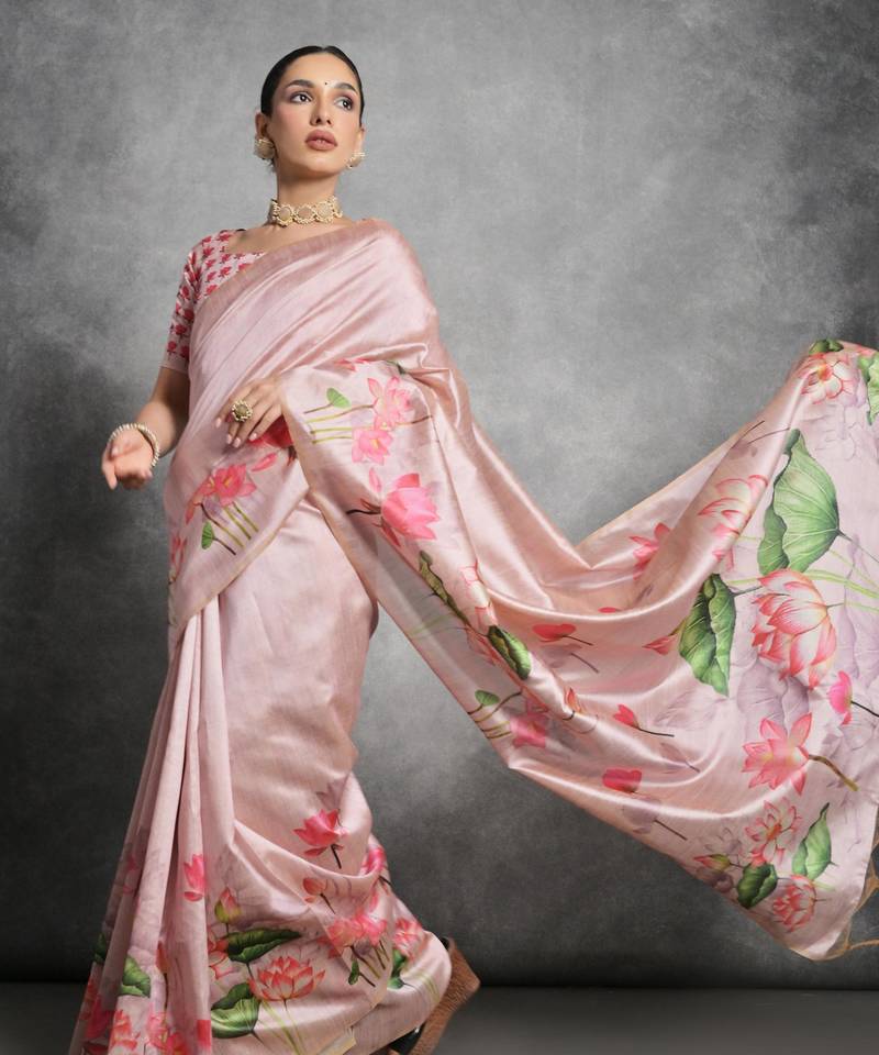 | Product Name | Peach Soft Tussar Silk Floral Printed Saree With Blouse | |