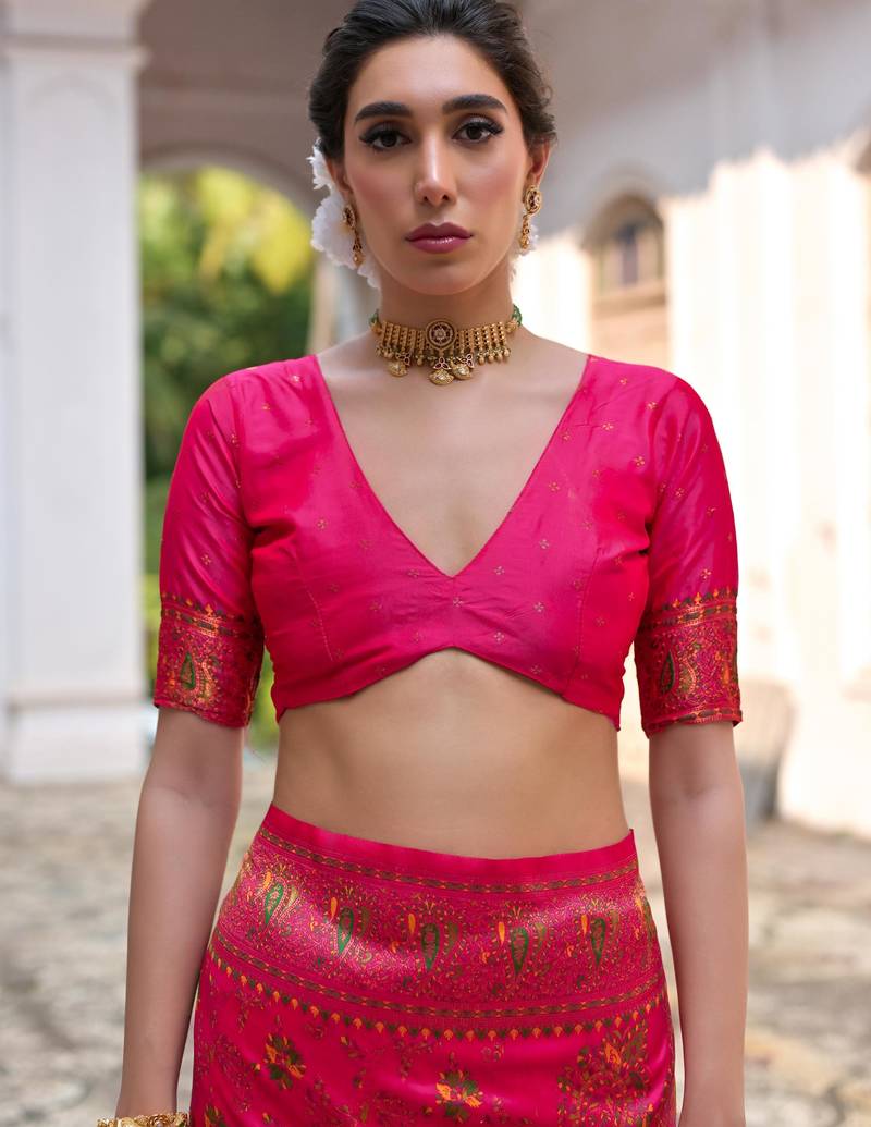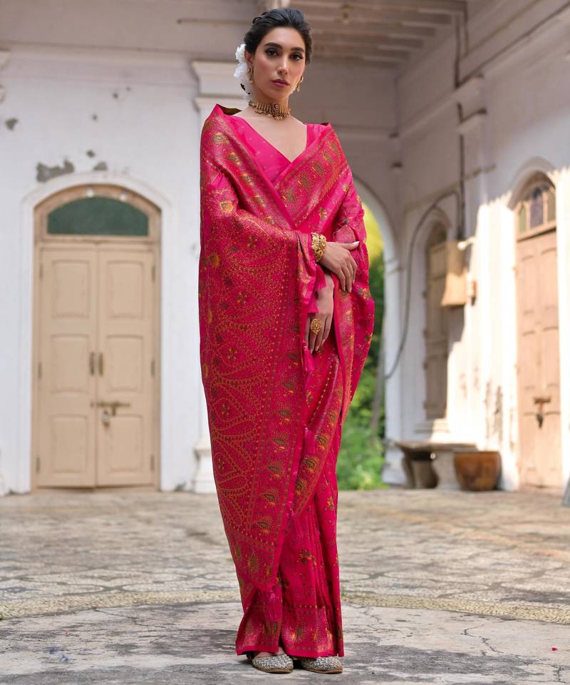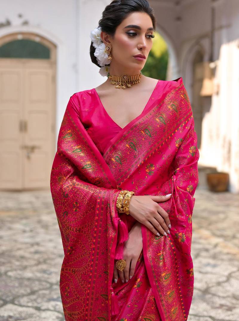 | Product Name | Pink Soft Pashmina Silk Meena Zari Woven Saree With Blouse | |
