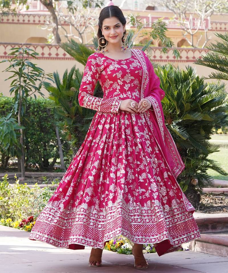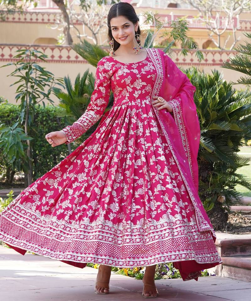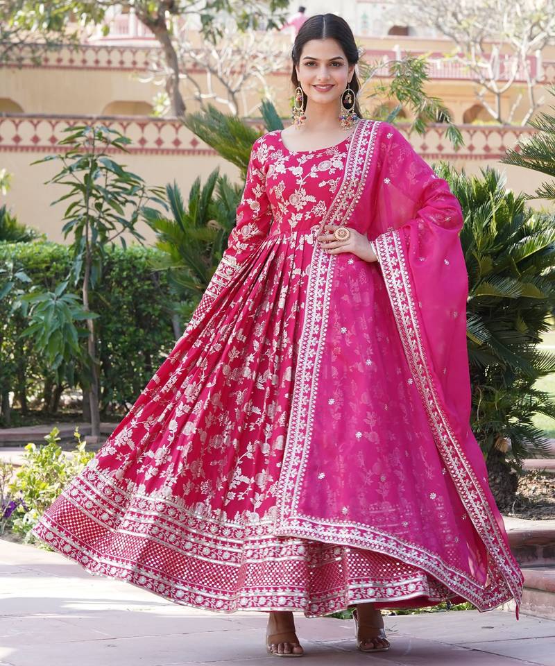 | Product Name | Pink Viscose Jacqard & Sequins Embroidered Anarkali Gown With Dupatta | |