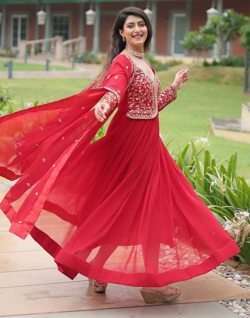 | Product Name | Designer Red Faux Blooming Embroidered Anarkali | |