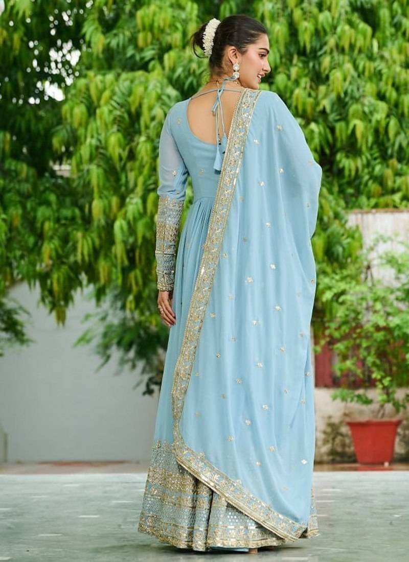| Product Name | Sky Blue Faux Georgette Embroidered Anarkali Set | |
