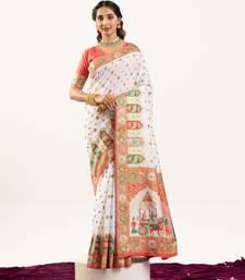 White banarasi pashmina soft silk zari woven saree with blouse