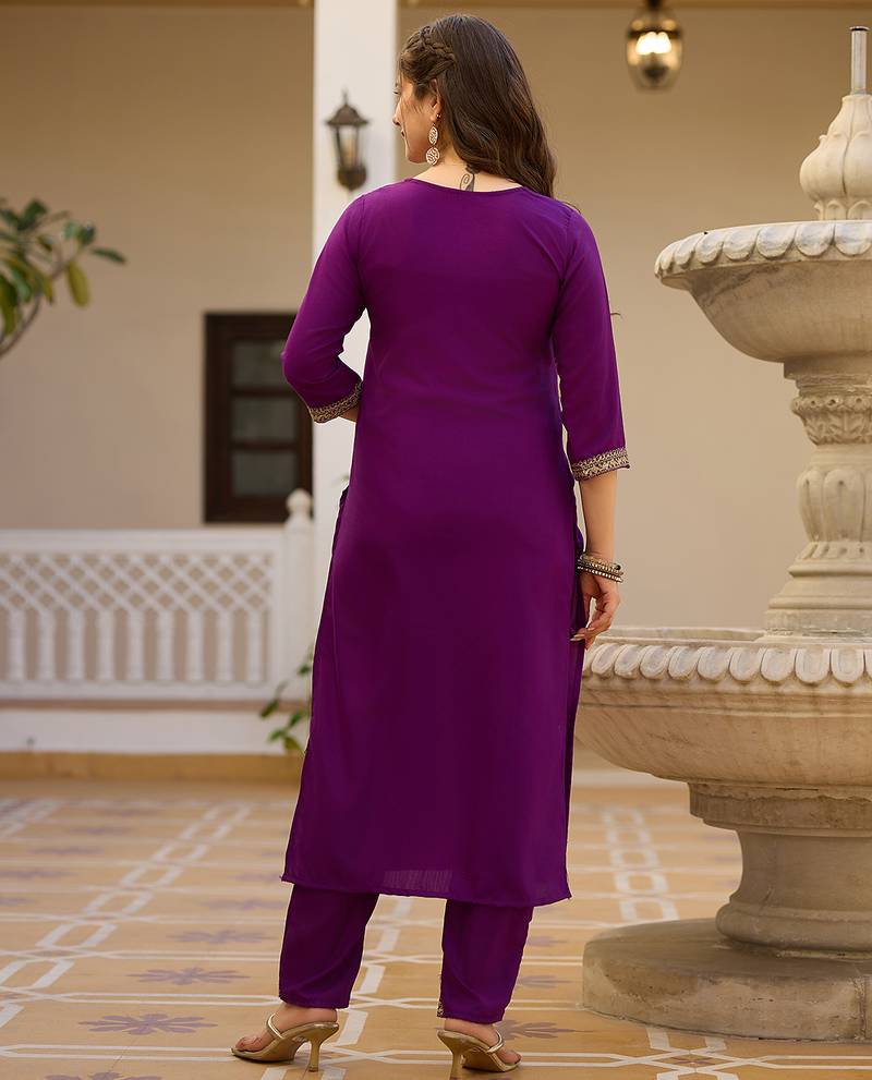 | Product Name | Wine Embroidered Rayon Kurta Set With Dupatta | |