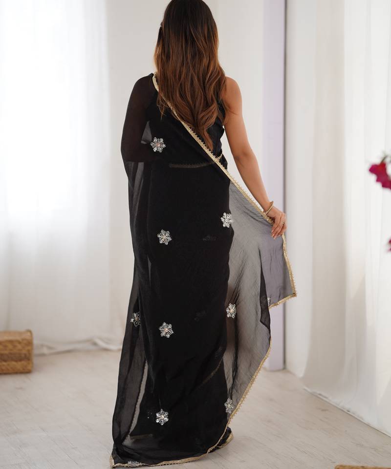 Black fendy embroidered soft designer saree for women
