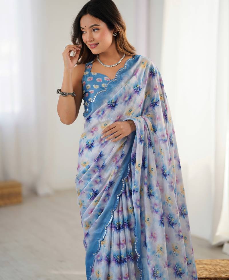 | Product Name | Women's Blue Chinon Digital Printed Designer Saree With Blouse | |