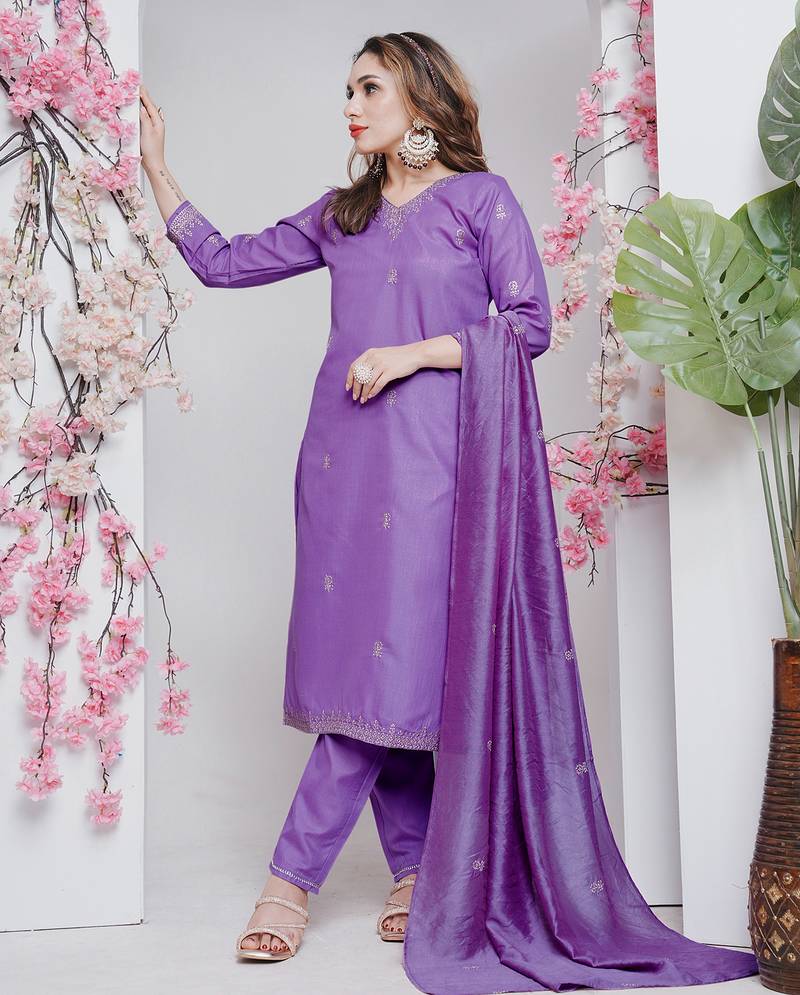 | Product Description | Elegant Straight Cut Rayon Kurta With Embroidery, V Neck, Half Sleeves, And Side Slits. Ready To Wear Design Ensures A Structured And Comfortable Fit. Comes With Rayon Pants With Partially Elasticated Waistband And A Silk Blend Dupatta To Complete The Ethnic Look. Breathable Fabrics And Classic Styling Make It Suitable For Casual Or Traditional Occasions. The Coordinated Set Offers Comfort, Ease Of Dressing, And A Complete Ethnic Outfit In One Package. |