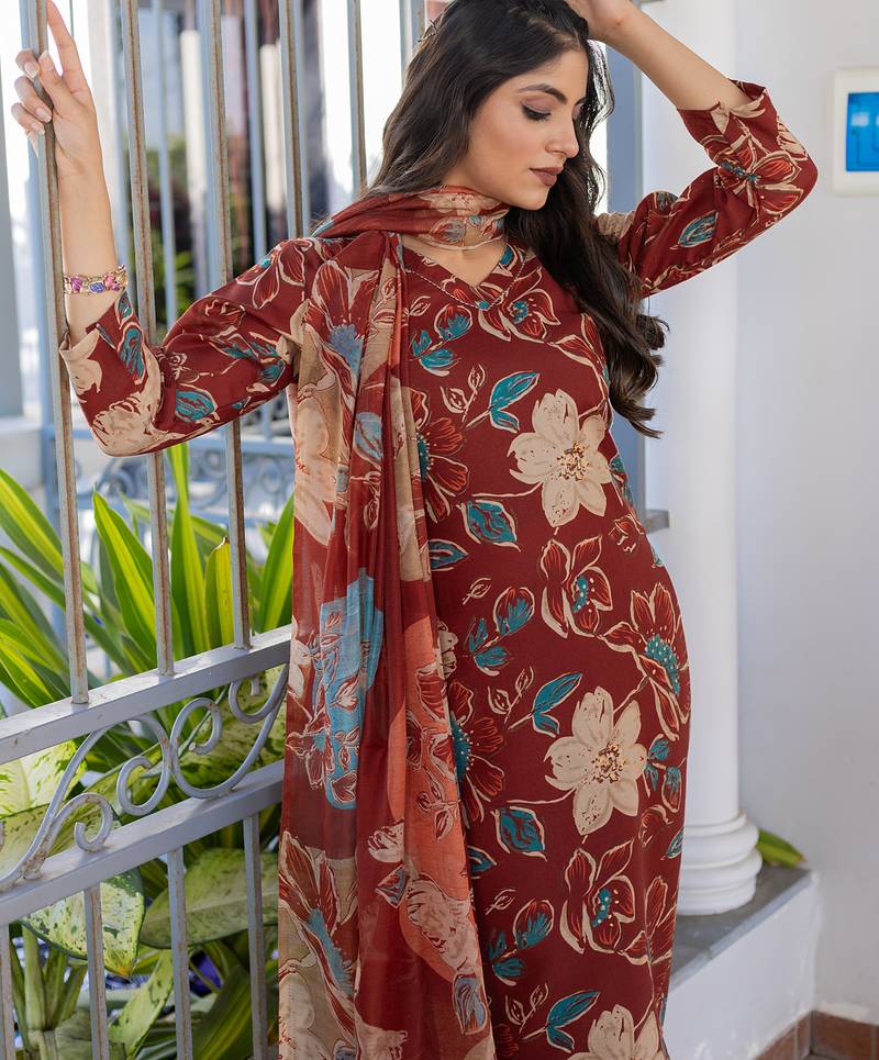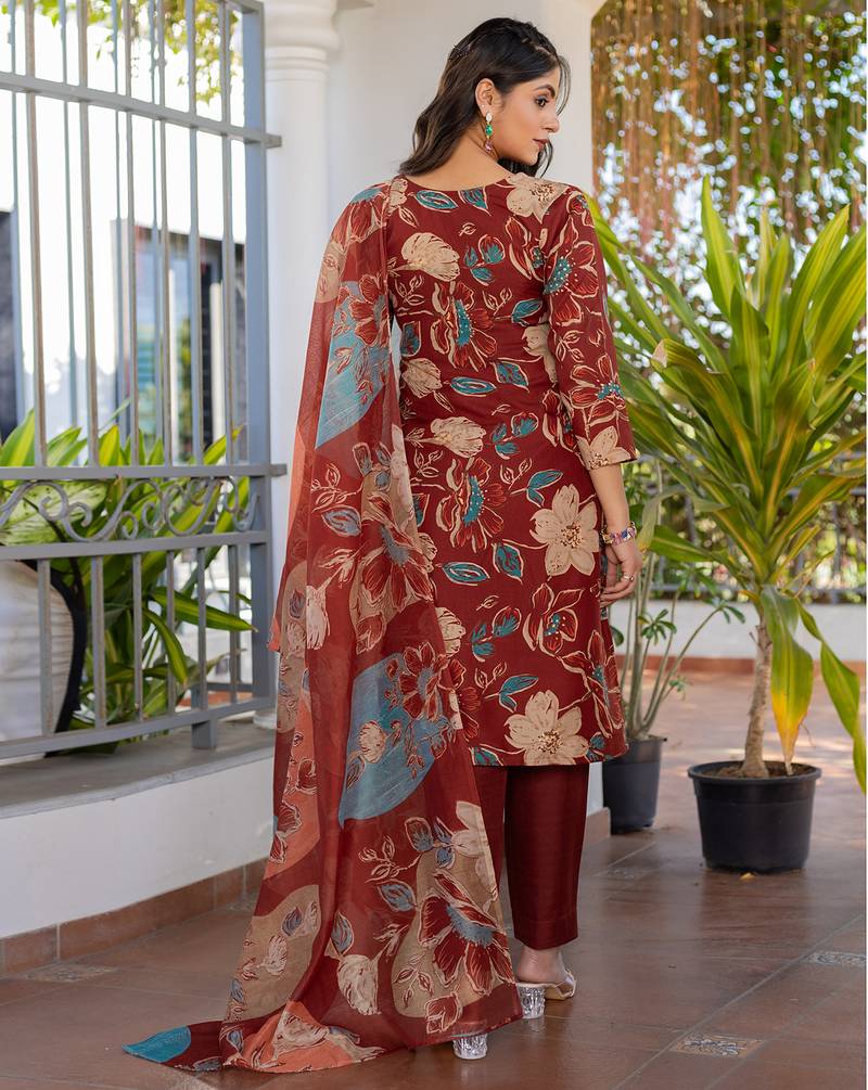 | Product Name | Women's Maroon Cotton Blend Printed Designer Kurta Set With Dupatta | |