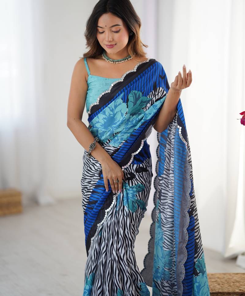 Women's multicolor chinon digital printed designer saree with blouse