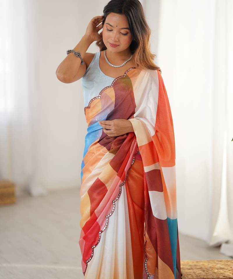 | Product Name | Soft Chinon Multicolor Digital Print Saree With Fine Lace Border | |