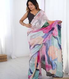 | Product Name | Multicolor Digital Printed Chinon Saree With Subtle Border Work | |