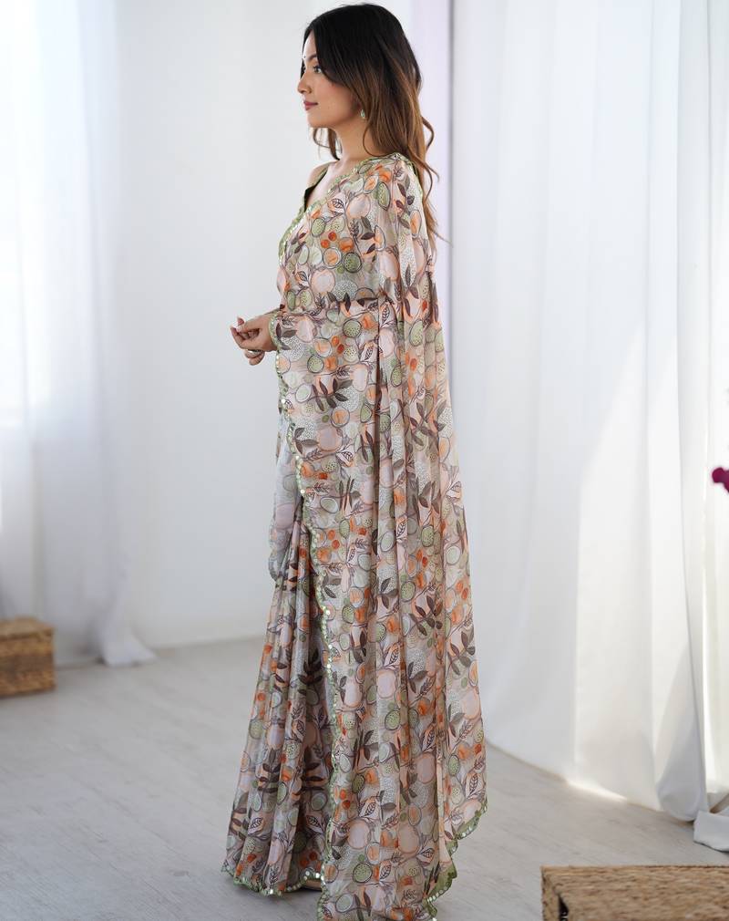 Women's multicolor chinon digital printed designer saree with blouse