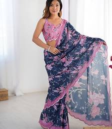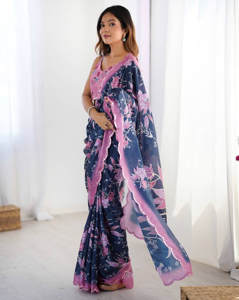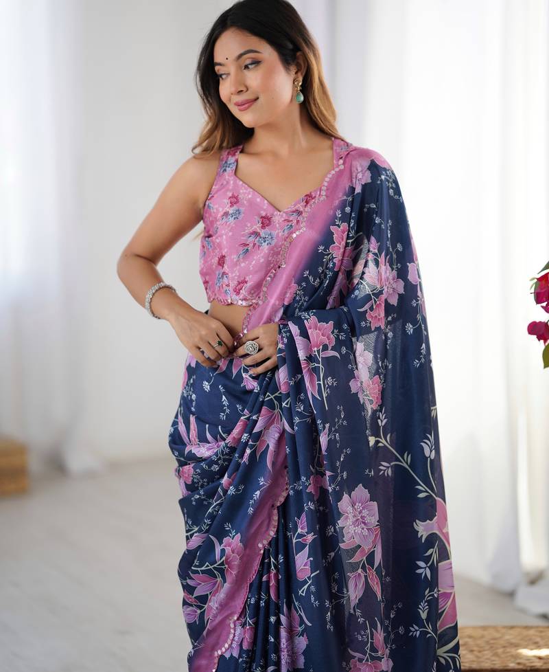 | Product Name | Women's Navy Blue Chinon Digital Printed Designer Saree With Blouse | |
