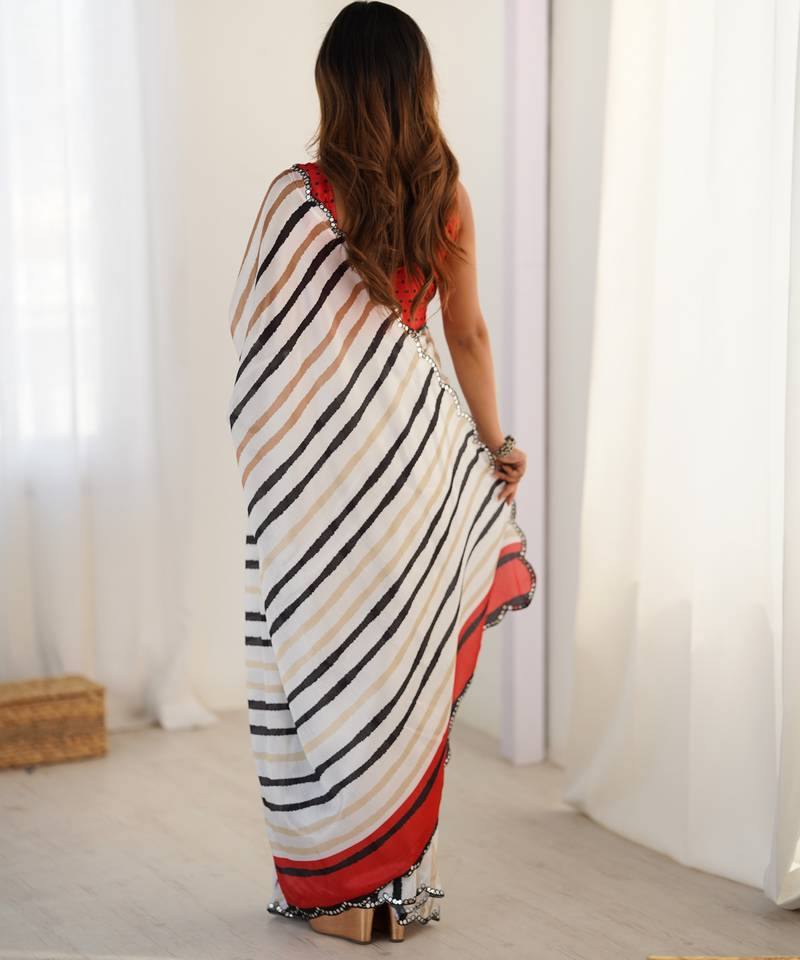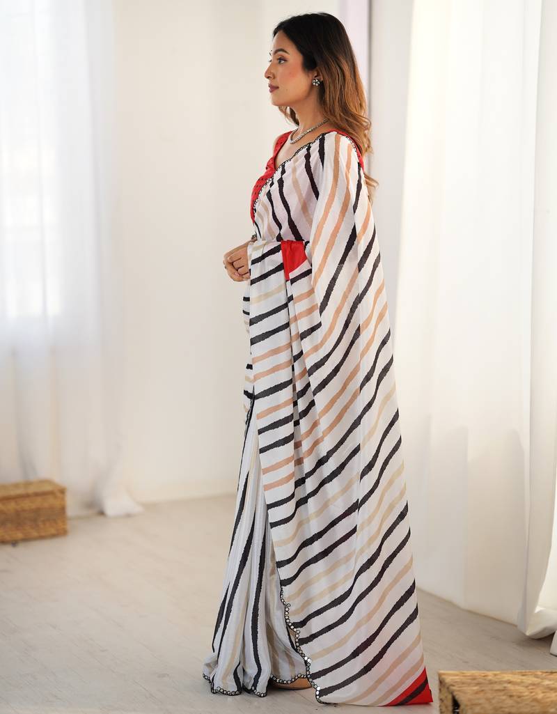| Product Name | Chinon Off White Digital Print Saree With Clean Stripe Pattern | |