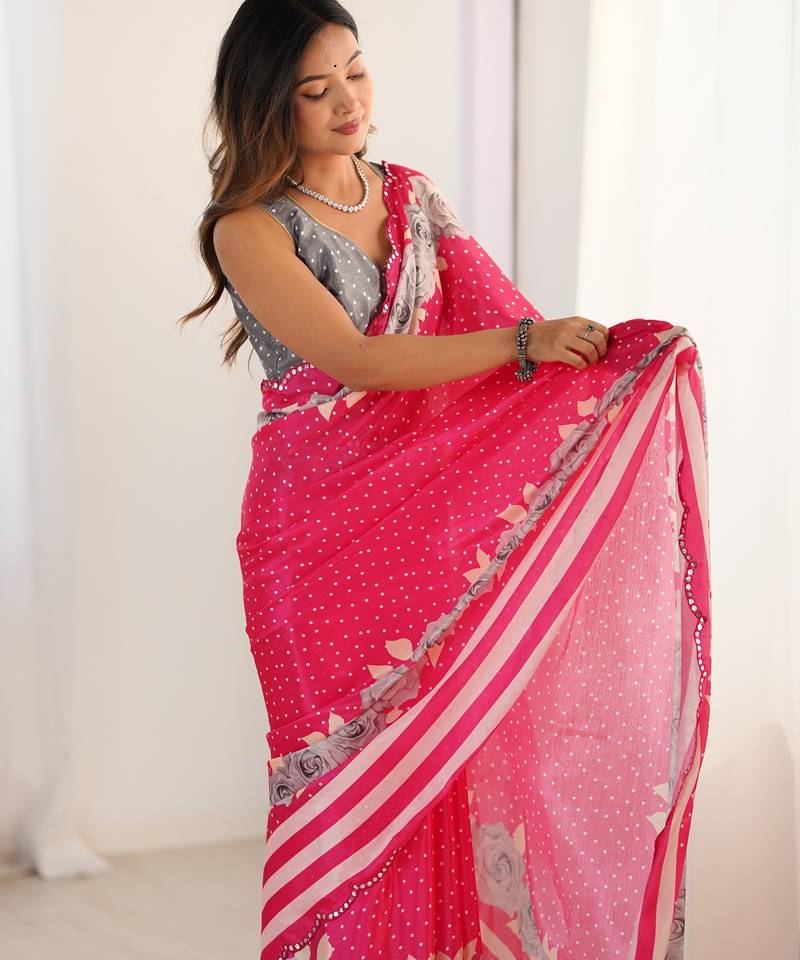 Women's pink chinon digital printed designer saree with blouse