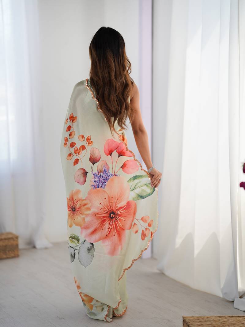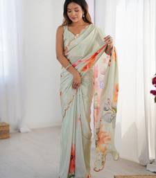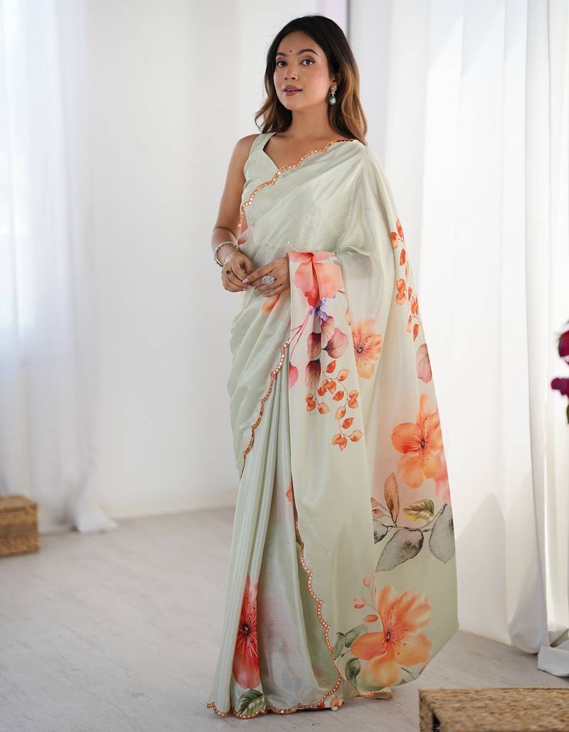 | Product Name | Women's Pista Green Chinon Digital Printed Designer Saree With Blouse | |