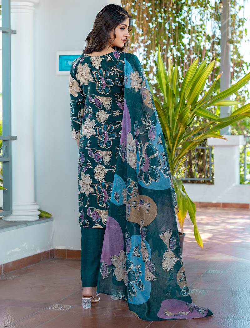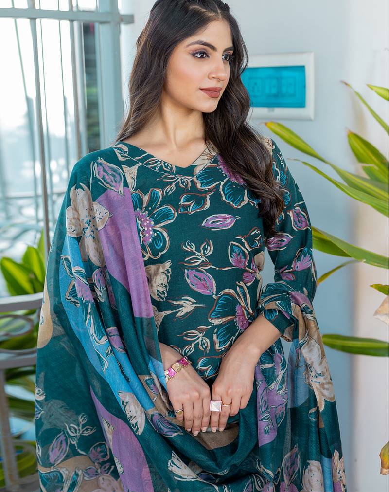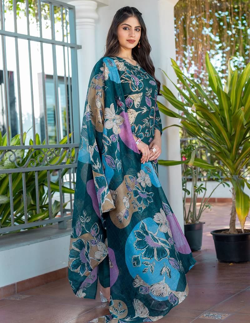 | Product Name | Women's Teal Cotton Blend Printed Designer Kurta Set With Dupatta | |
