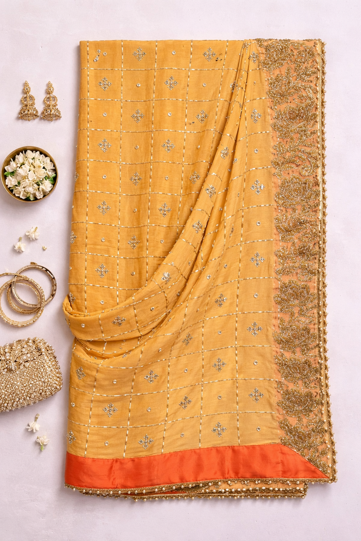 Gota saree with mirror work without blouse