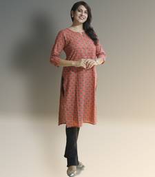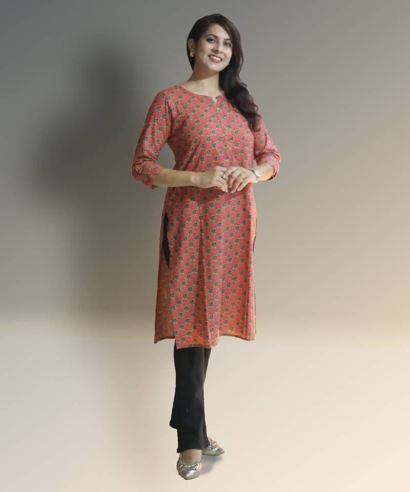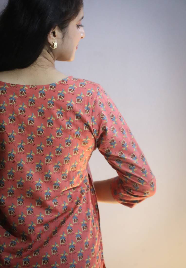 Women's Cotton Rust With Multi Color Embellished Kurta