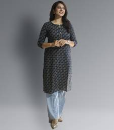 Women's Cotton Straight Blue With Multi Color Embellished Kurta