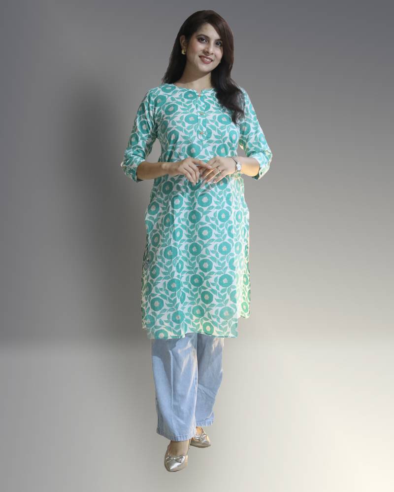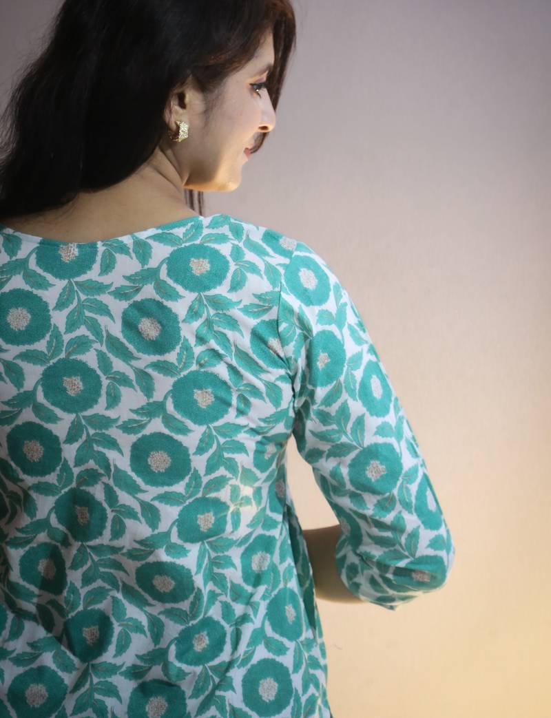 Product Name Women's Cotton Straight White/C Green Embellished Kurta