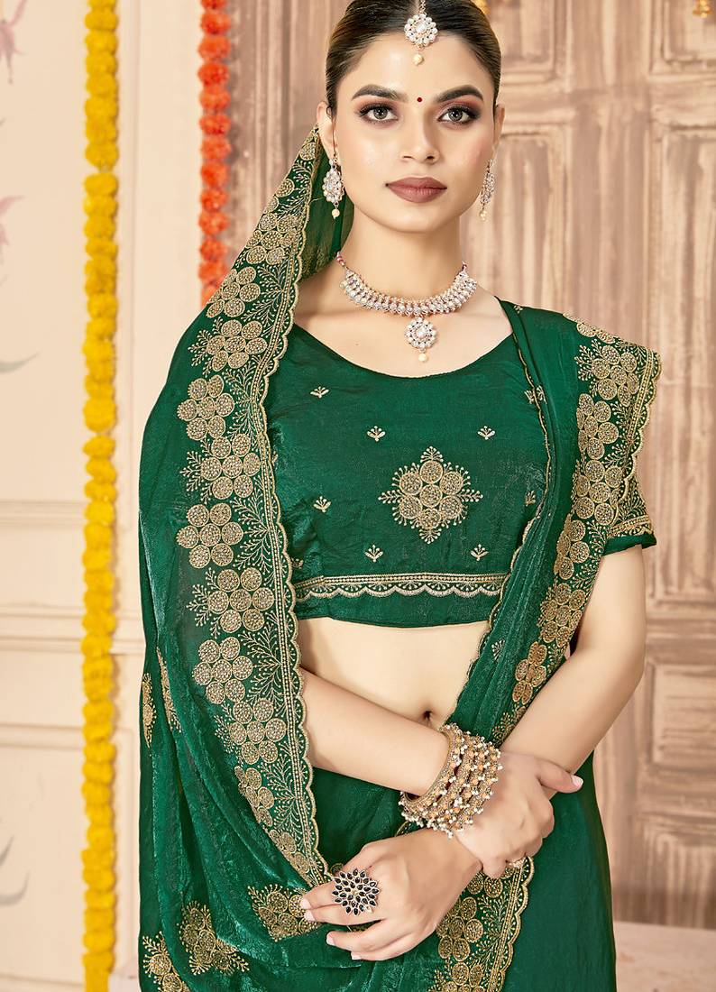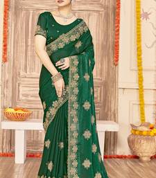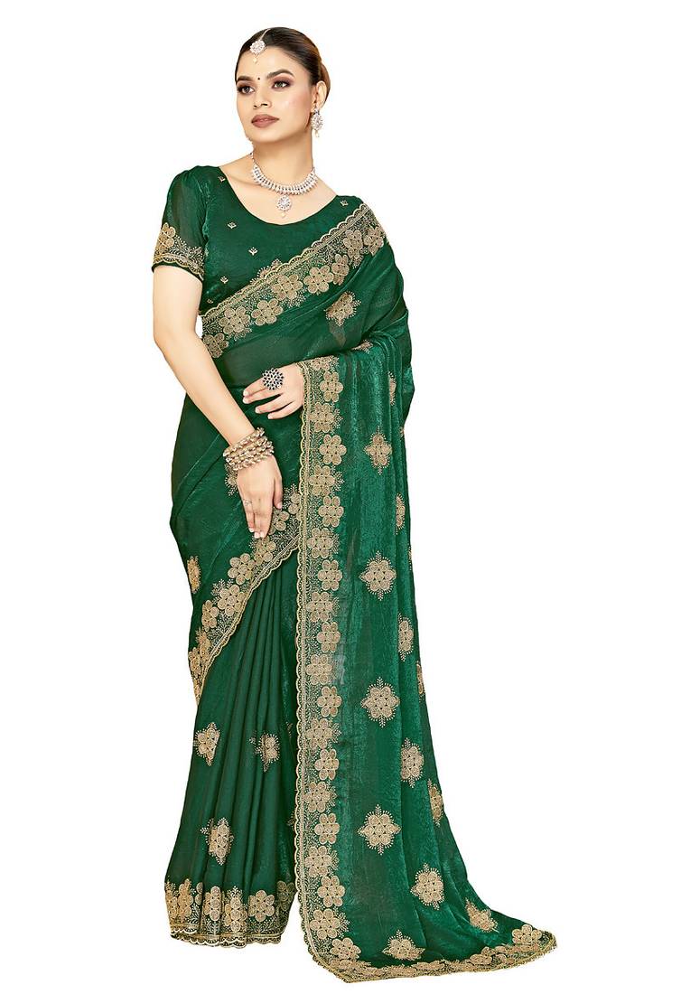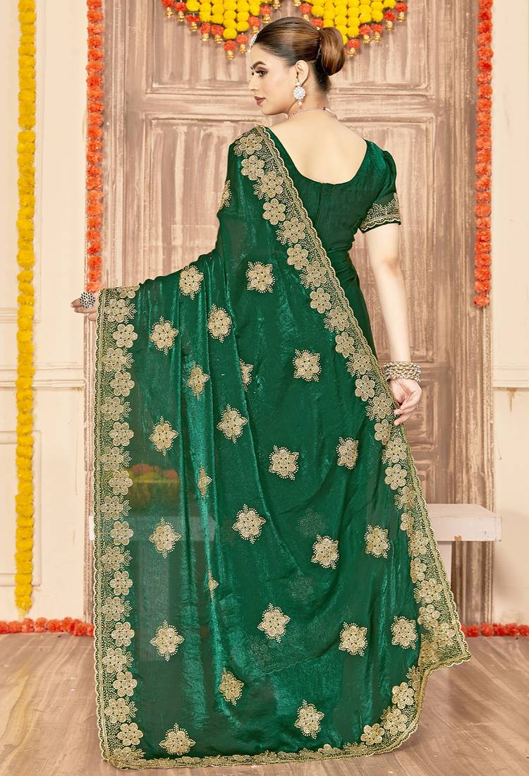 Designer bottle green heavy zari embroidery silk blend party wear saree