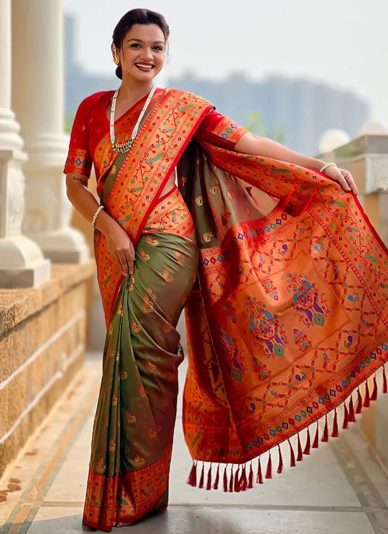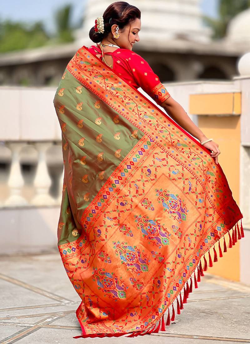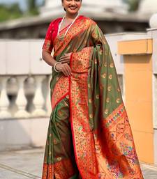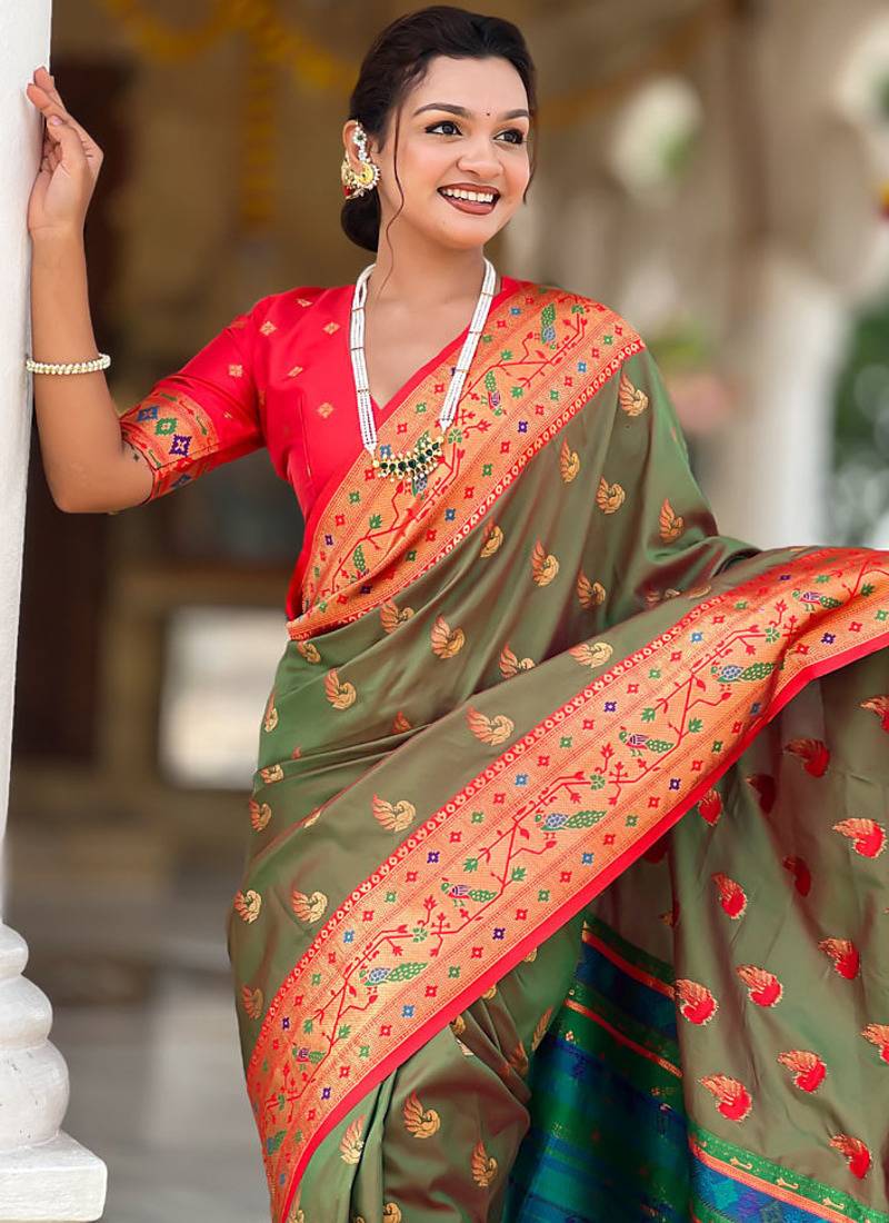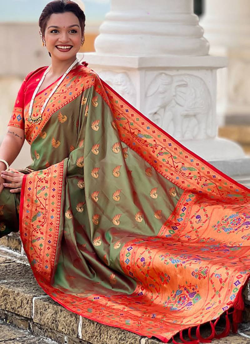 | Product Name | Designer Mehendi Green Zari Weaving Work Paithani Silk Saree | |