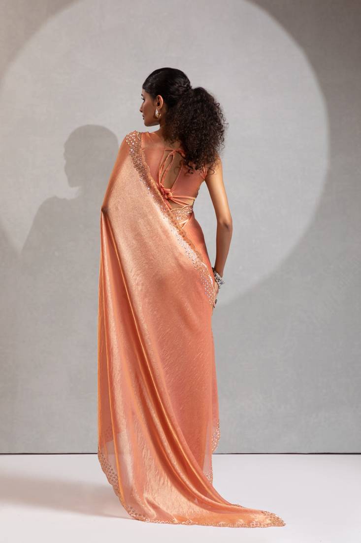 | Product Name | Designer Peach Handwork Zarkan Work Silk Blend Saree | |