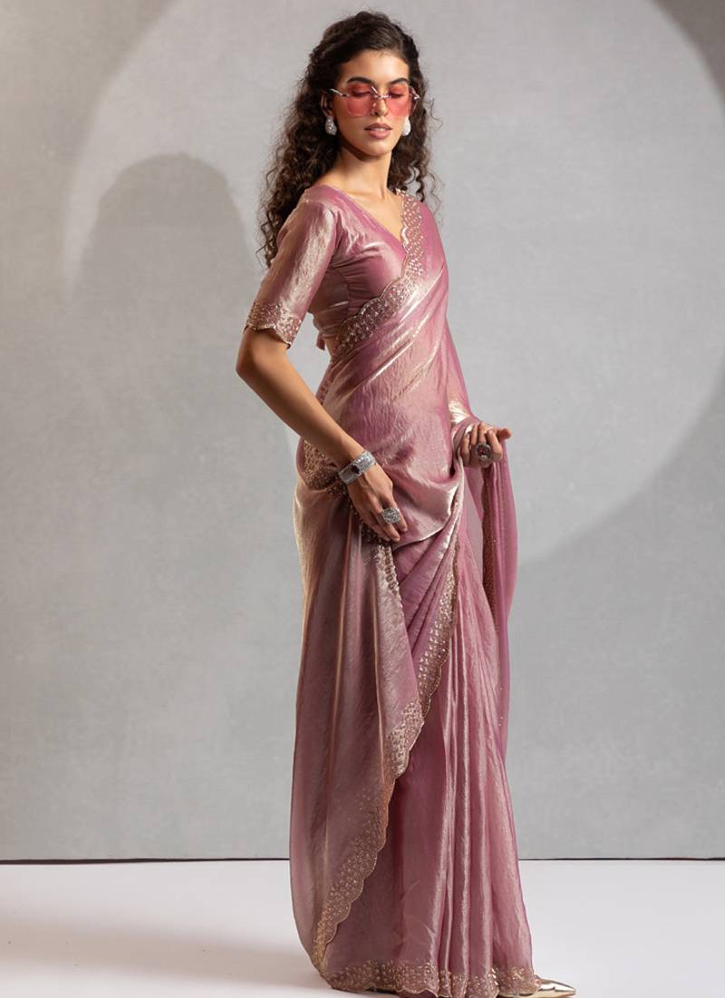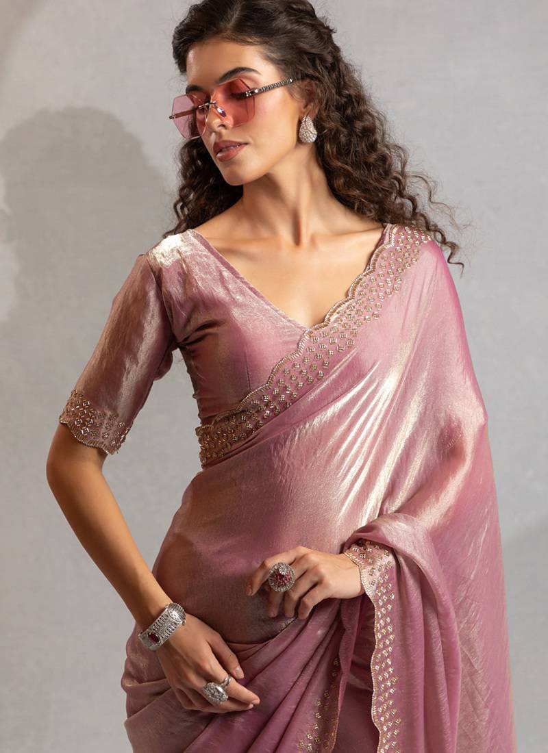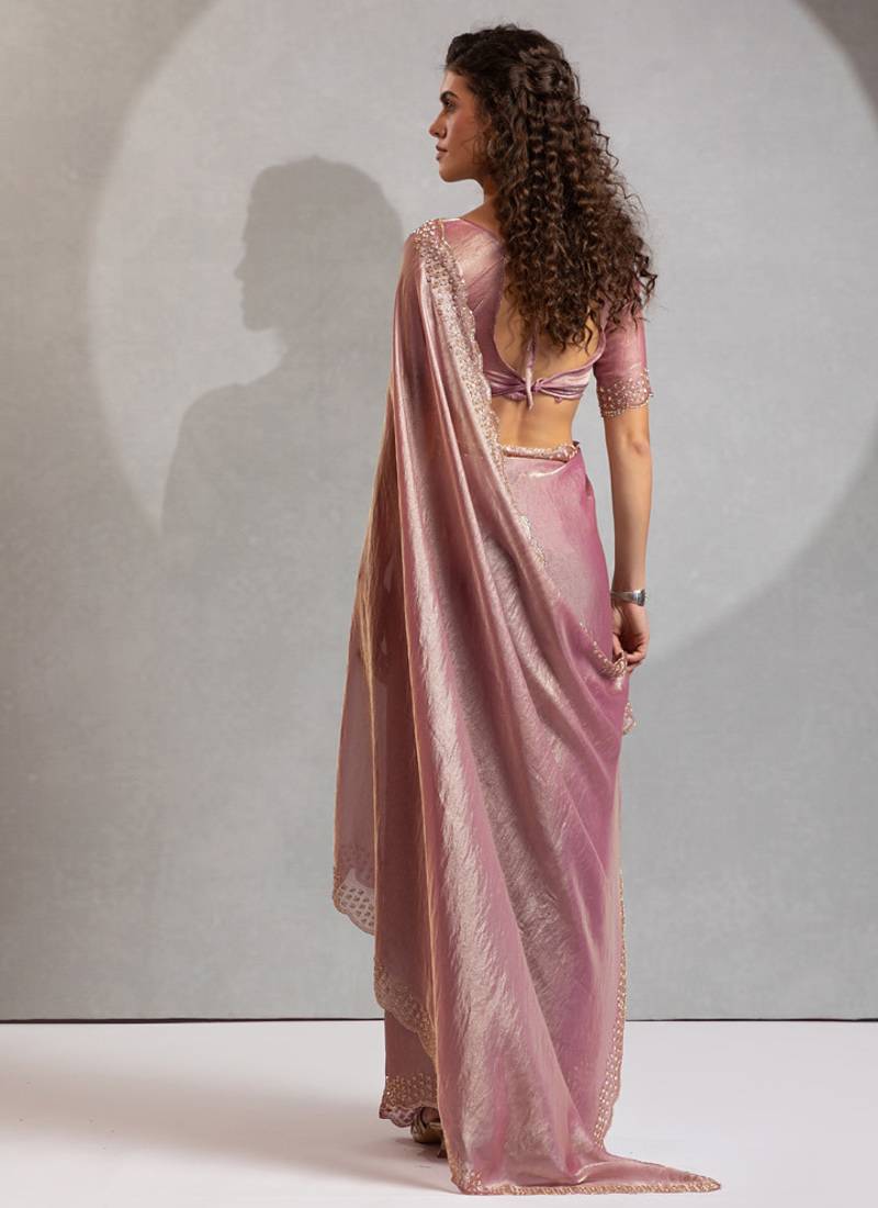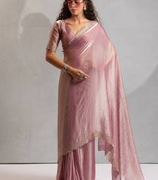 Designer pink handwork zarkan work silk blend saree