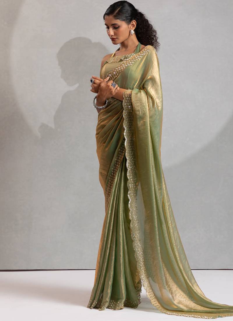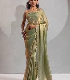 | Product Name | Designer Pista Green Handwork Zarkan Work Silk Blend Saree | |