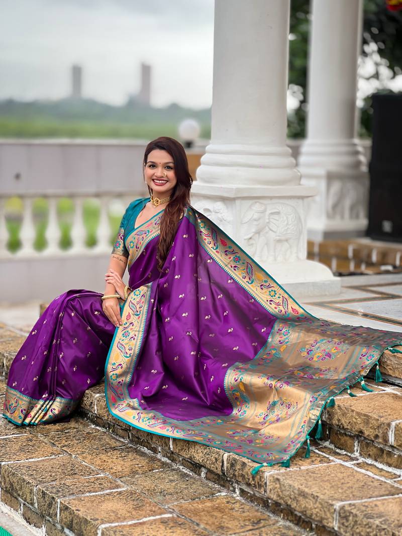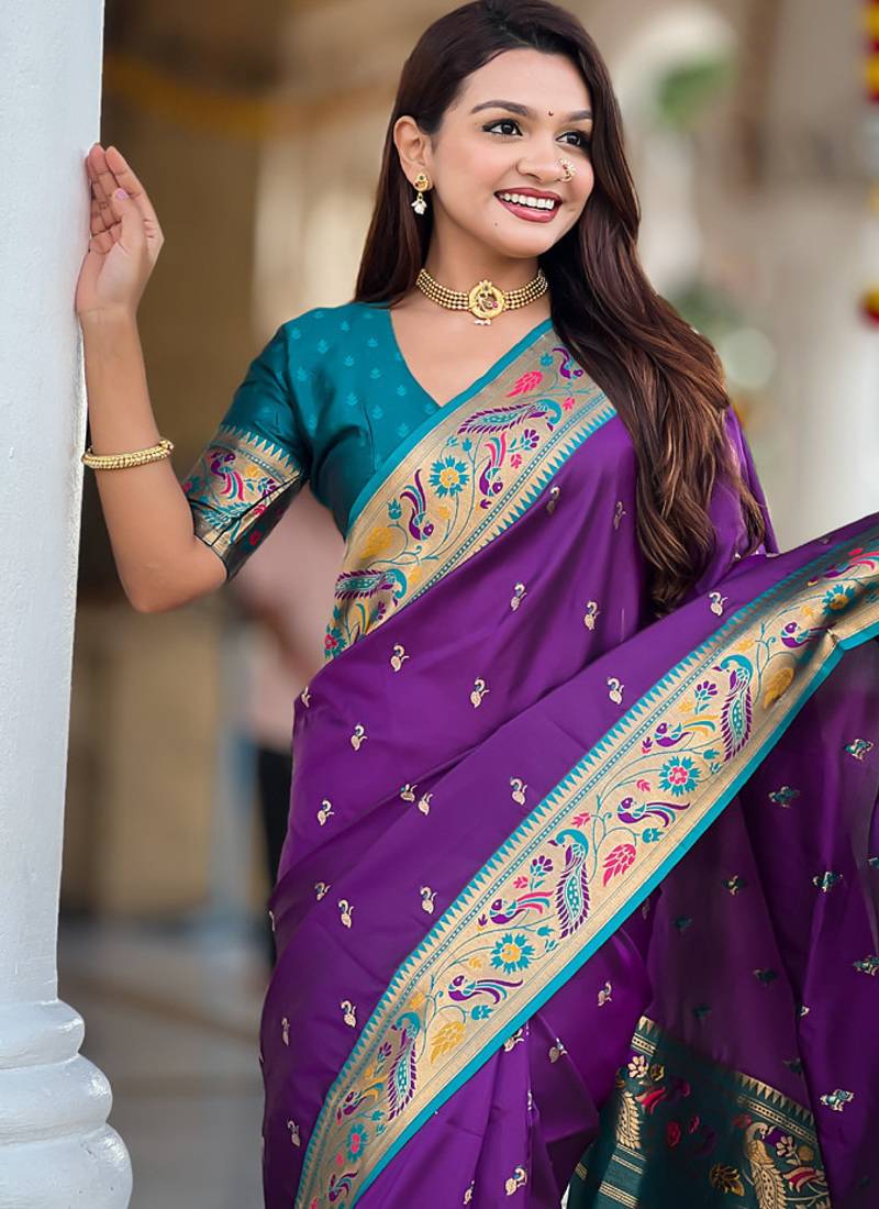 | Product Name | Designer Purple Meenakari Weaving Work Paithani Silk Saree | |